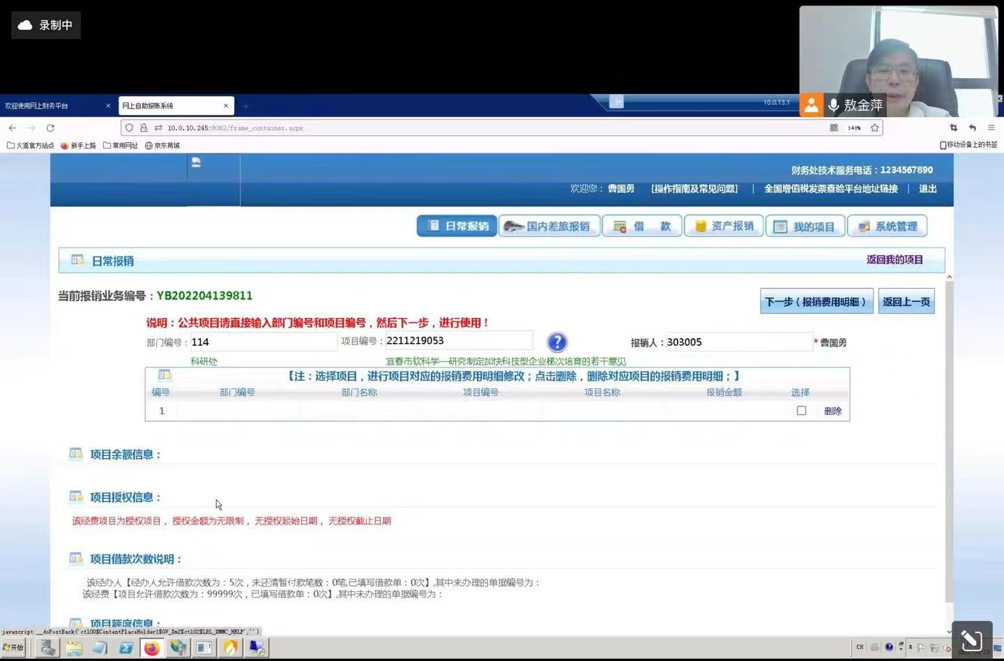 为进一步提升财务报销效率,优化财务服务质量,深入推进财务信息化建设进程,更好地为全校师生服务。4月13日下午,遵循学校疫情防控相关要求,计划财务处邀请江西浩天公司敖金萍为全处干部职工就财务新系统上线准备工作进行了视频业务培训。